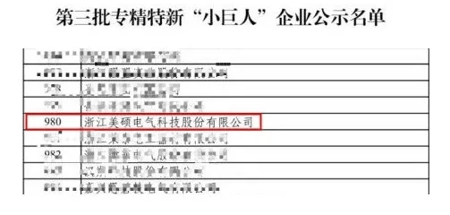 喜報!美碩電氣入選工信部第三批專精特新 “小巨人”企業(yè)